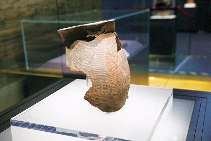 这件距今4000多年的陶扁壶上的“文”明晰可见。图为2023年6月28日拍摄的陶寺古迹出土的朱书陶扁壶(中国考古博物馆藏)。 中国历史经营院供图